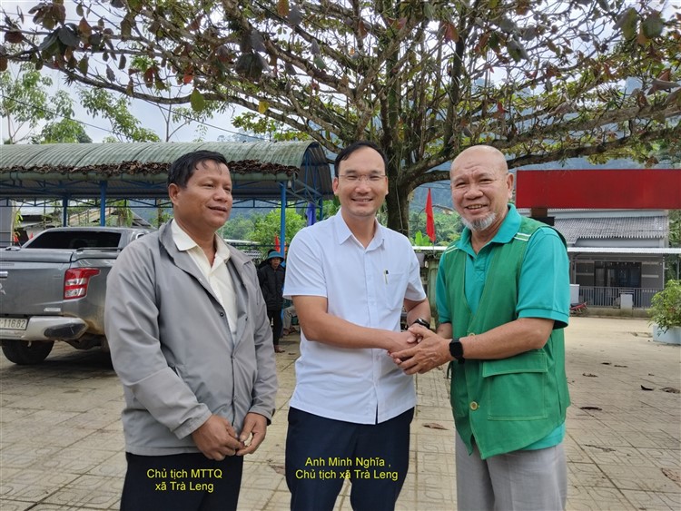 Tại xã Trà Leng , anh Minh Nghĩa (chủ tịch xã) cùng Bí thư , Chủ tịch Mặt trận xã đã tiếp đoàn . Qua trao đổi , được biết vẫn còn có những điểm chưa thông vẫn còn bị tắt vì quá sức của xã. Do đó chúng ta chỉ có thể đến được 10 trong tổng số 16 hộ bị sập mất nhà hoàn toàn (không ngoài dự đoán) .