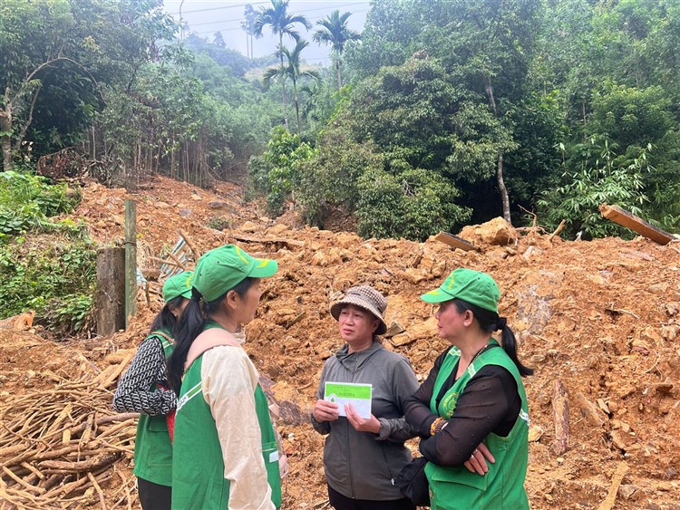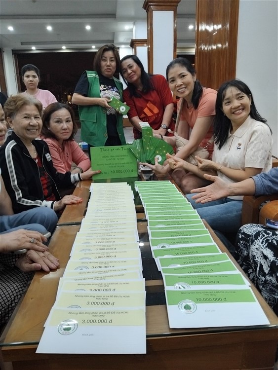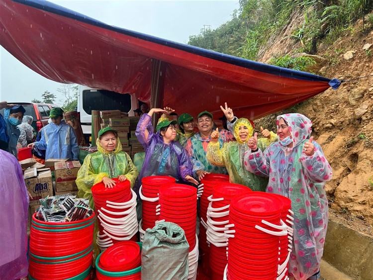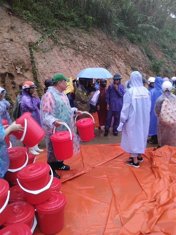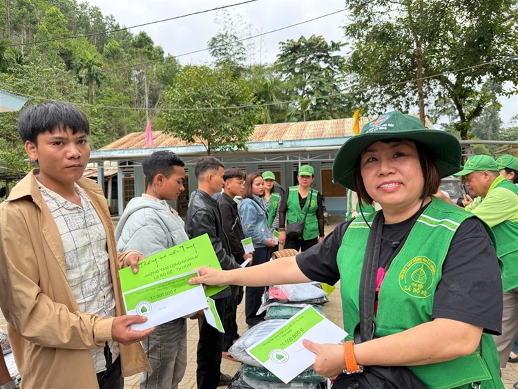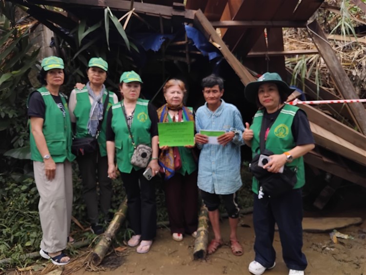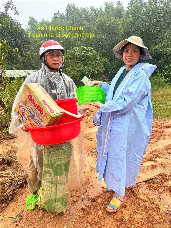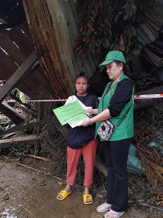 Sau đó đoàn chia thành 2 toán đi đến tận nơi trao tiền hộ trợ 10 triệu đồng (mổi hộ) . Thật đau lòng khi chứng kiến những thảm cảnh đau thương trước những đống đổ nát của những căn nhà bị sạt lở, có nhà thì không còn gì hiện diện trên mặt đất … Những lời an ủi động viên là không thể thiếu mà các thành viên đã không quên mang đến với bà con , một nghĩa cử nhỏ cũng là liều thuốc chữa lành giúp bà con vượt qua sang chấn tâm lý sau khi đối diện giữa làn ranh sanh tử .