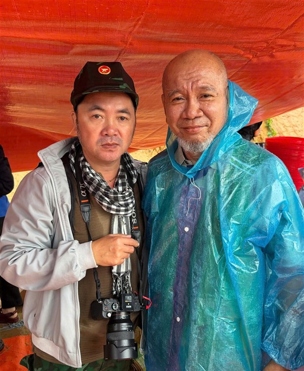 Giữa đường dốc núi mưa mây phủ kín lối . Ứng biến , dùng xe 15 chỗ làm bệ đở mái che tạm trong khi trời vẫn cứ mưa to không ngớt , Công việc được triển khai gấp rút khẩn trương trong điều kiện chật hẹp , ướt nhèm nhẹp . Đã vậy còn phải chạy đua với cái đồng hồ vì khả năng đoàn có thể bị trể giờ bay về lại Sg (dù khi đặt vé, ta đã dự phòng có dư thời gian , nhưng ôi thôi khả năng lở chuyến là có thể xảy ra . Tới đâu tính tới đó , công việc là trước tiên ) .